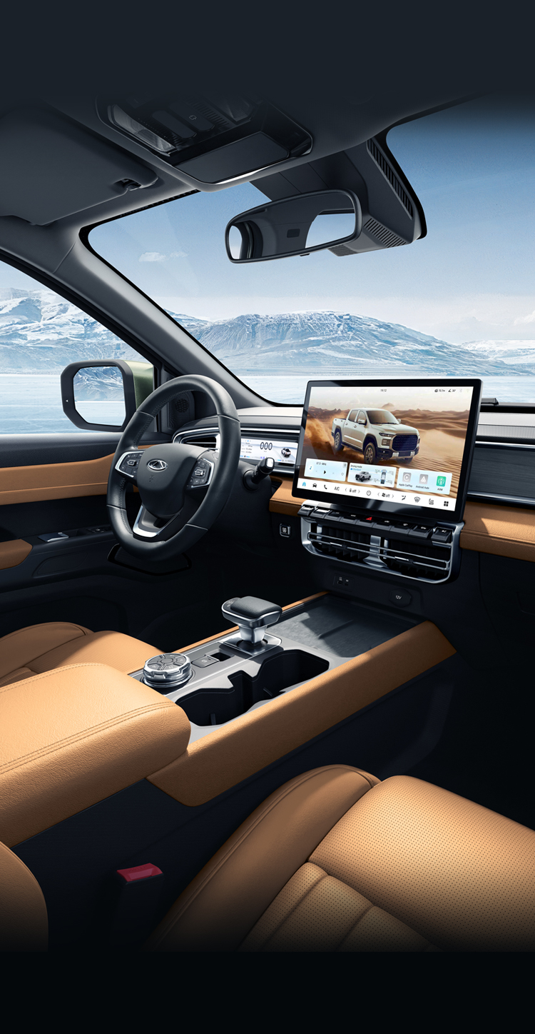 15.6-inch floating large screen, with higher clarity and wider viewing angle, enhancing the experience and technological feel. The backrest angle at the rear end reaches 26°. The super spacious rear cabin makes your pickup as comfortable as an SUV.