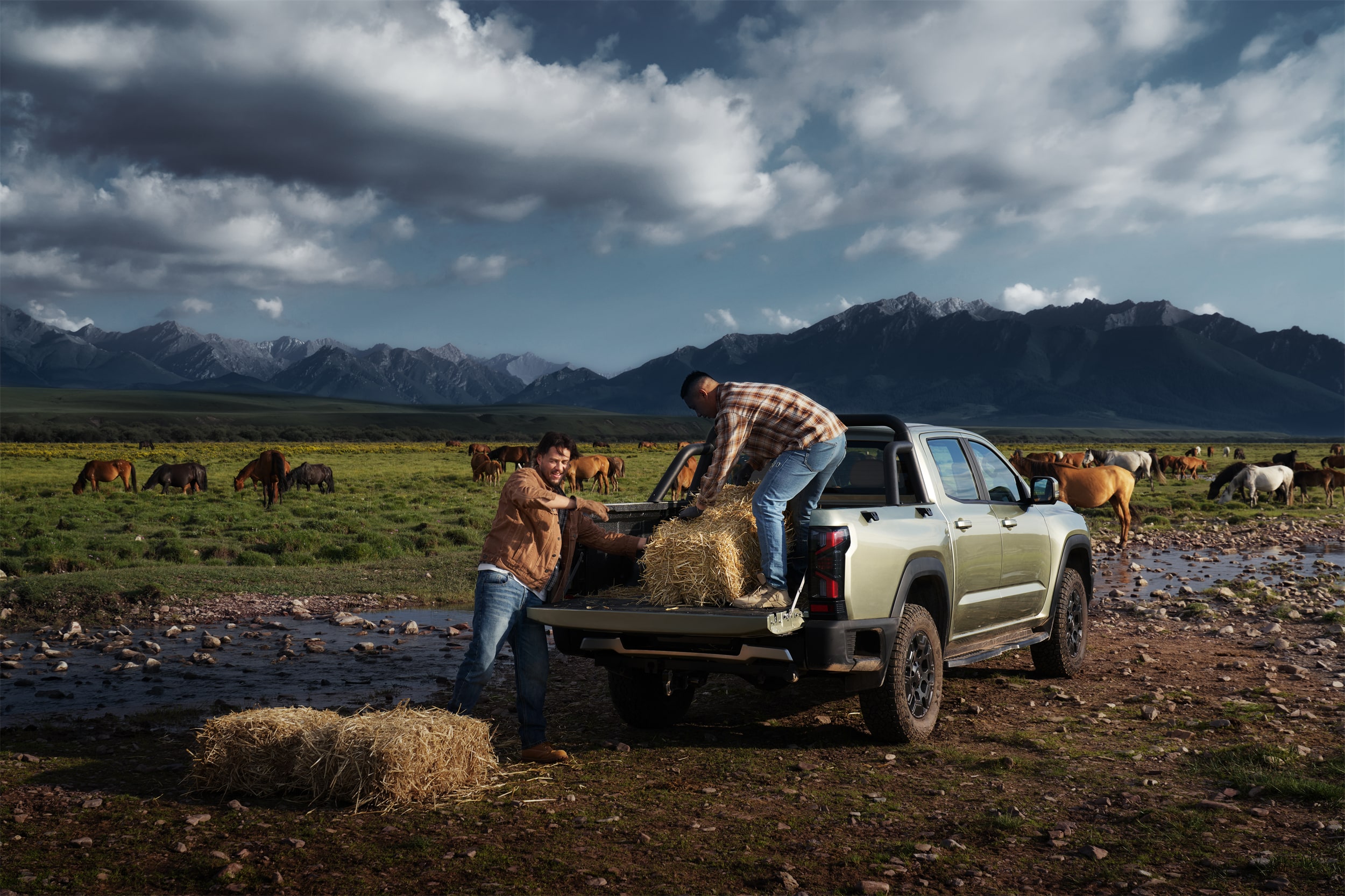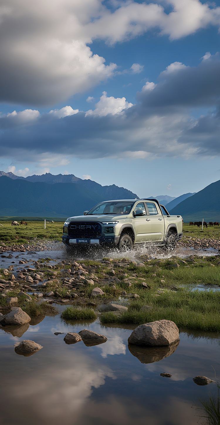 Approach angle 33°,Departure angle 24°,All-terrain adaptation enables you to easily pass through any environment. Superior performance, maximum towing capacity of 3 tons. Adaptive four-wheel drive, powerful engine, helps you conquer all slopes.