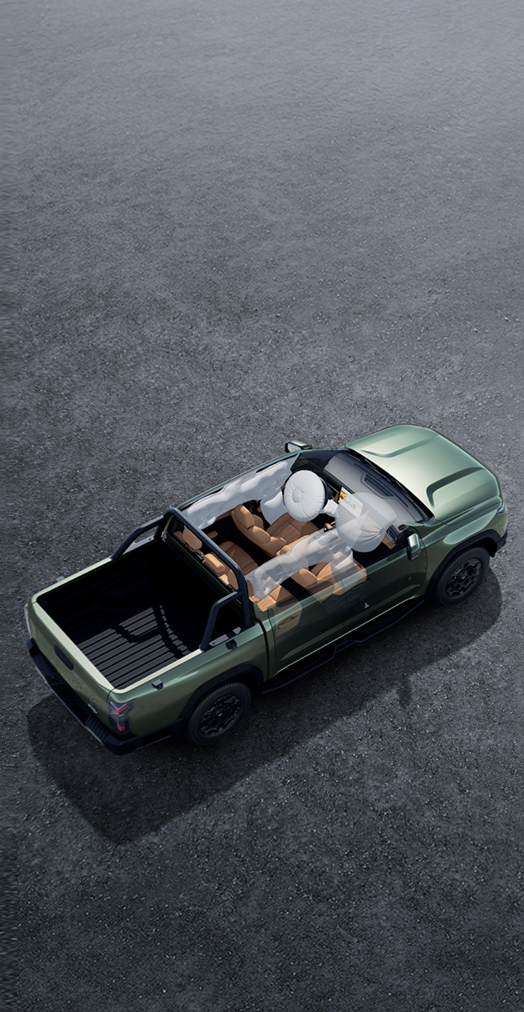 The vehicle adopts a structure with up to 52.2% high-strength steel, forming a solid fortress of safety. 48% of its body is made of galvanized steel, forming a rust-resistant “armor” for the outer panels that blocks corrosive elements such as rainwater and de-icing salts at the source. Up to 7 airbags, providing protection to every corner.
